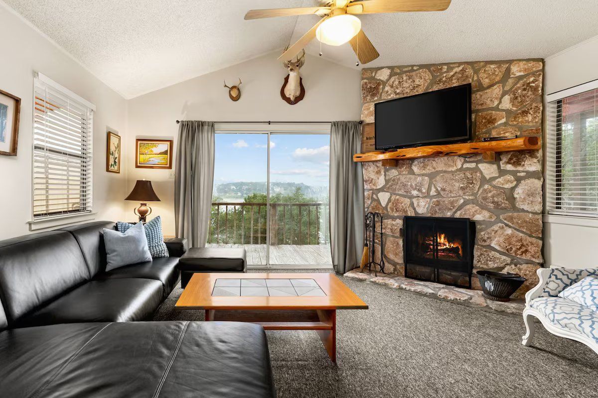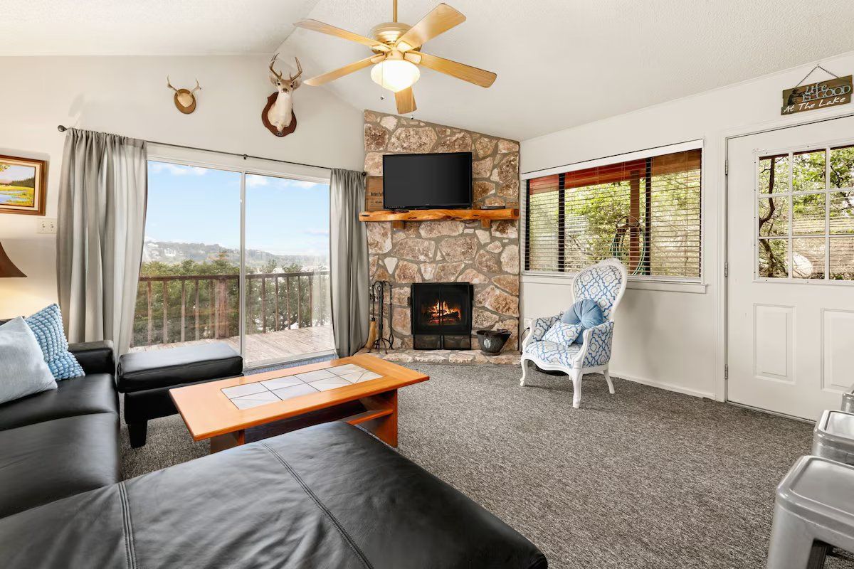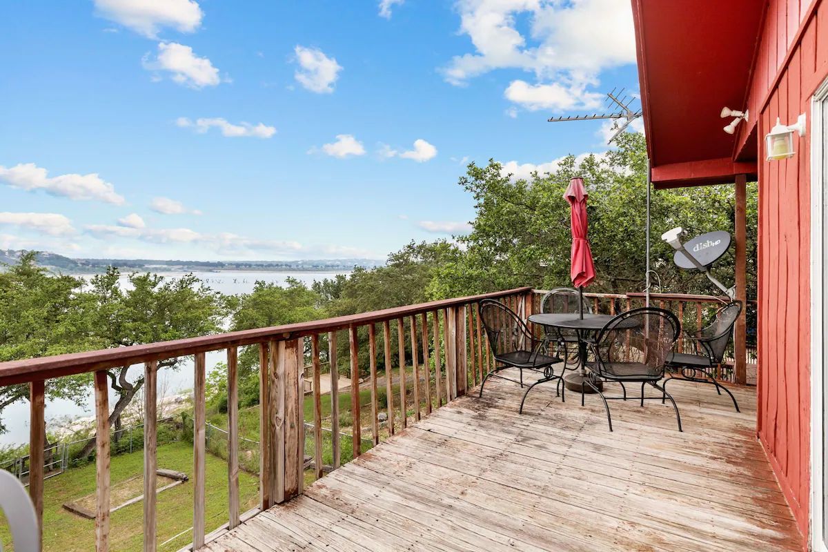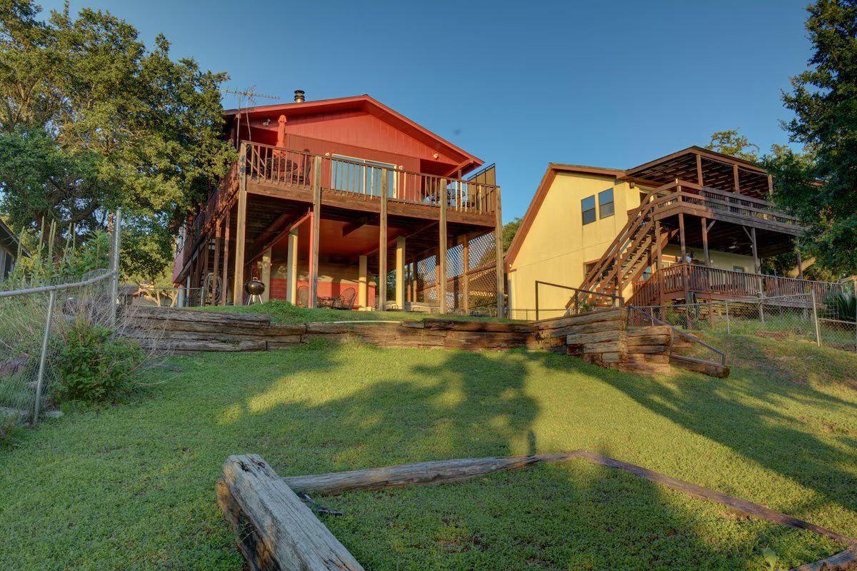 The Red House on Canyon Lake is a 3 bedroom 2 bathroom home directly on Canyon Lake. Your family will fall in love with this home's great outdoor spaces and come back for years to come. It's upper deck and lower patio are both perfectly situated to give you a view of the sun setting over the water every night. Relax with the tranquility and beauty of Canyon Lake while you grill out on the charcoal grill kept on the upper deck. Amenities include digital cable TV, central AC and heat, and high speed wireless internet access (free). Pets are welcome!