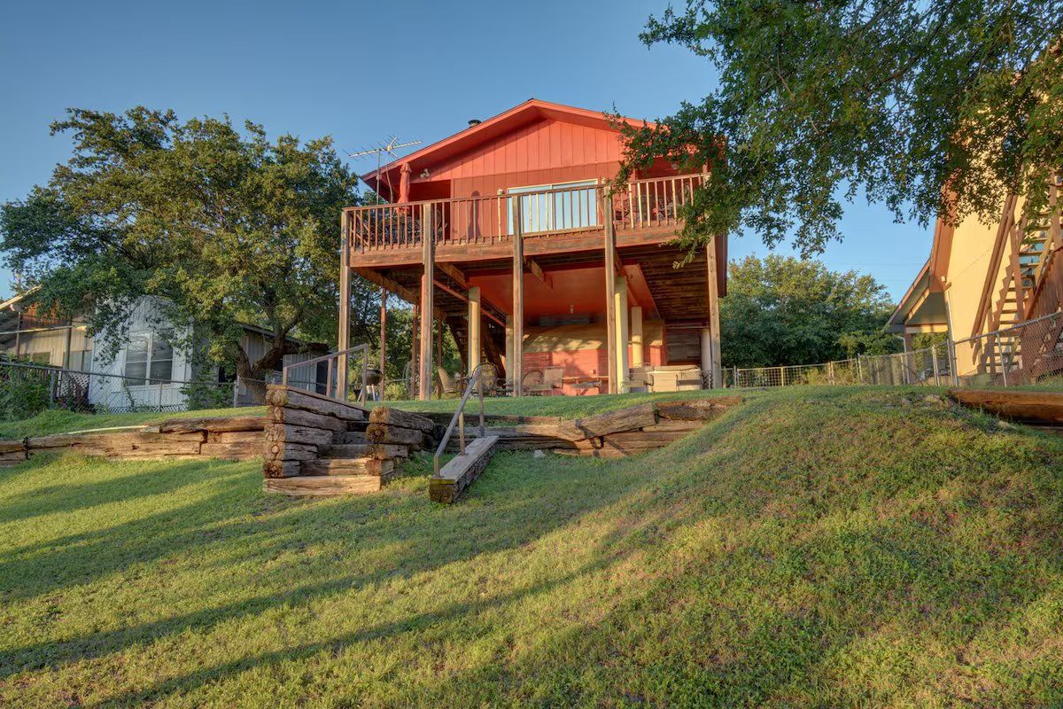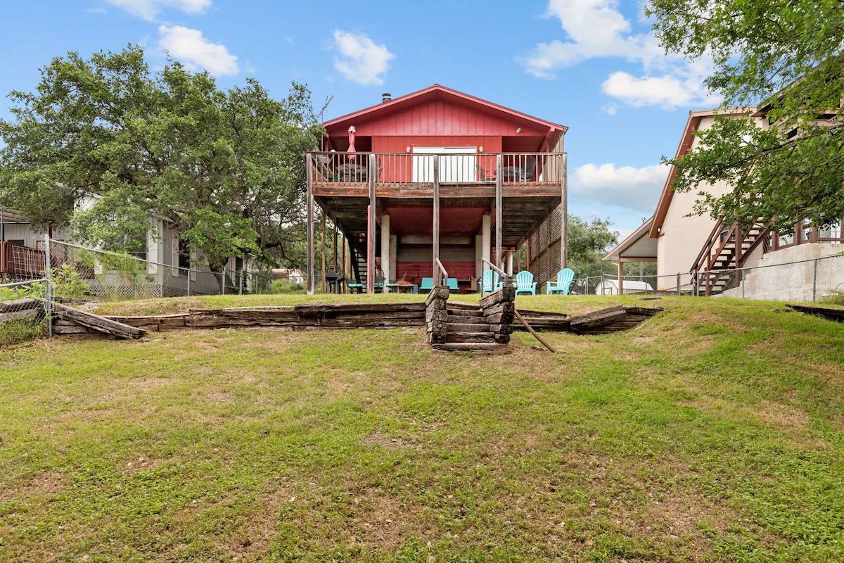 The Red House on Canyon Lake is a 3 bedroom 2 bathroom home directly on Canyon Lake. Your family will fall in love with this home's great outdoor spaces and come back for years to come. It's upper deck and lower patio are both perfectly situated to give you a view of the sun setting over the water every night. Relax with the tranquility and beauty of Canyon Lake while you grill out on the charcoal grill kept on the upper deck. Amenities include digital cable TV, central AC and heat, and high speed wireless internet access (free). Pets are welcome!